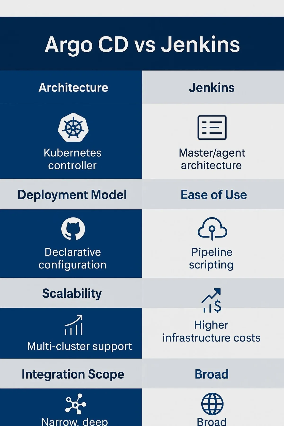 | Deployment Model | Pull-based (GitOps) | Push-based (pipeline triggers) |