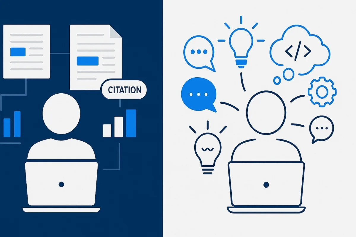 | Citations | Strong; Inline citations link directly to source passages | Weaker; Sourcing from uploads less direct/reliable, may blend with general knowledge |